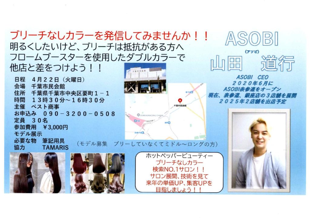 SNSでは解らない技術の肝の部分はリアルな講習会でしか知ることが出来ませんので是非ご参加ください。