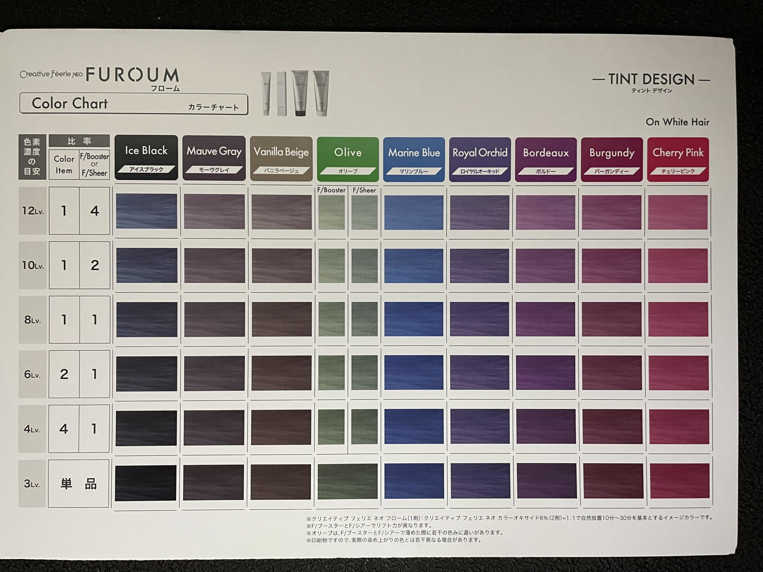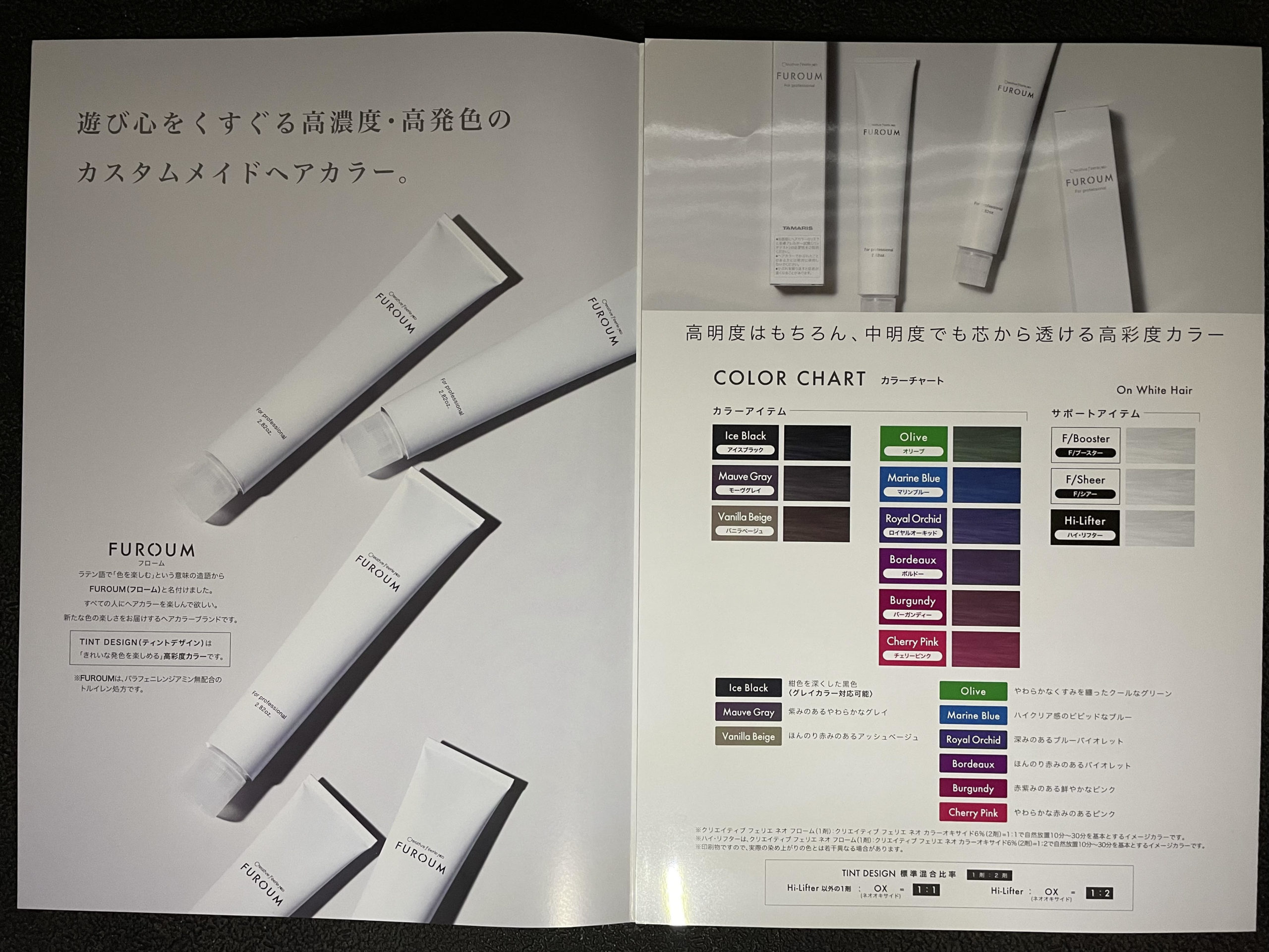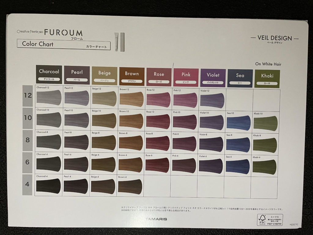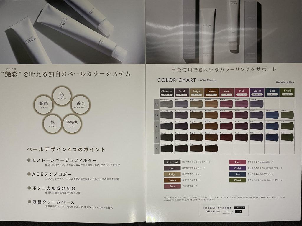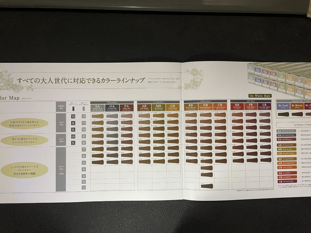 ヘアカラー剤はクリエイティブフェリェネオ(214色)ロイヤルグレイアミカ(103色)フローム(47色)と幅の広いお客様のニーズに合ったチョイスが選べます。
